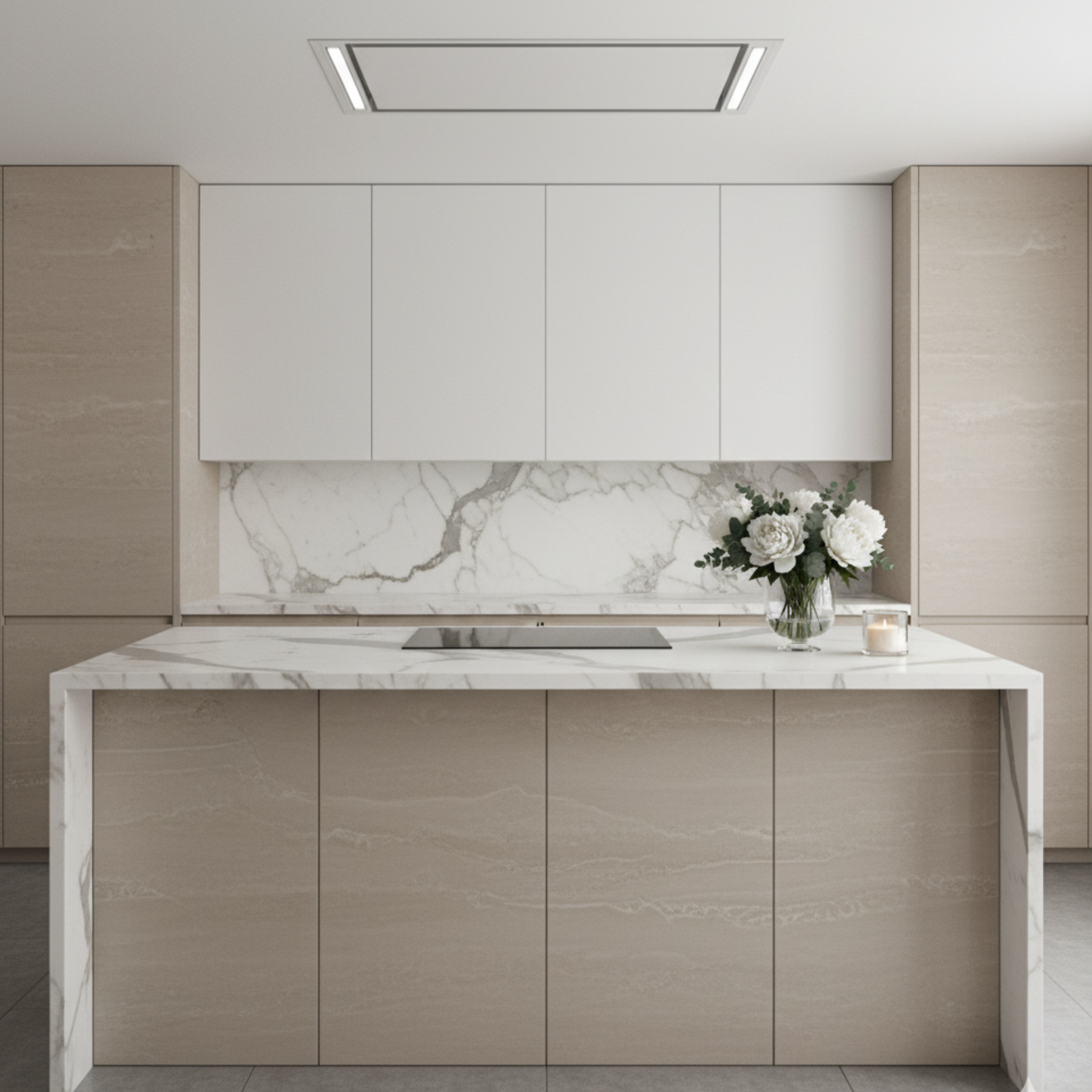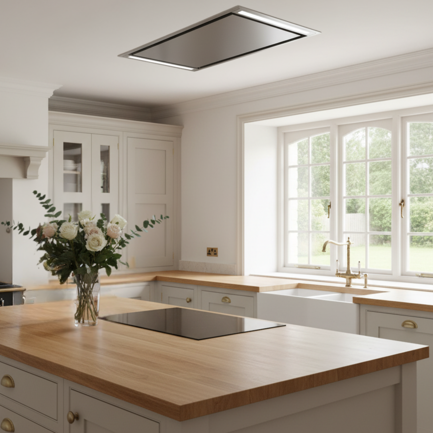 Premium flush-mounted ceiling cooker hood – perfect for modern kitchen designs