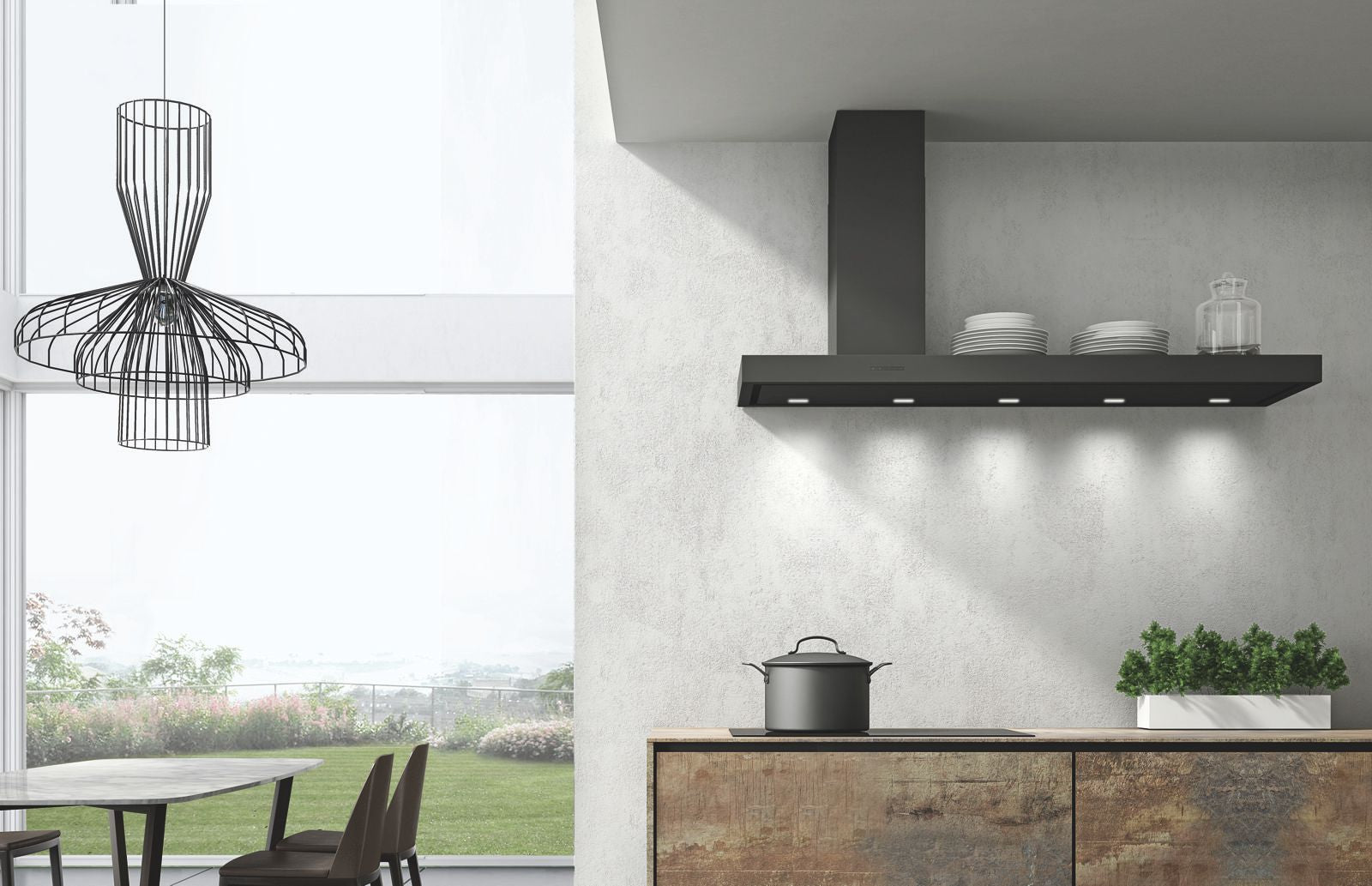 Chimney hoods – classic wall-mounted design with a flue.